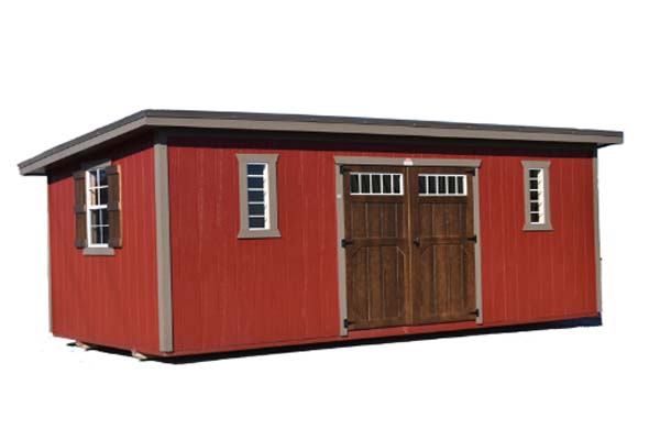 No windows included. Painted or Urethane LP Smart Siding standard. Standard includes your choice of 36” or 48” single door on 7’ and 8’ wide buildings. 10’ wide buildings come standard with double doors.